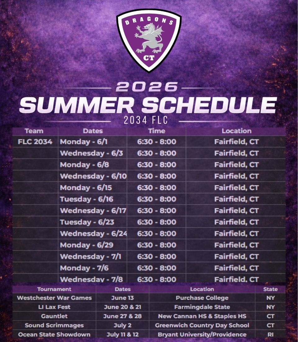 Dragons Fairfield Lacrosse Club Teams for the summer of 2026