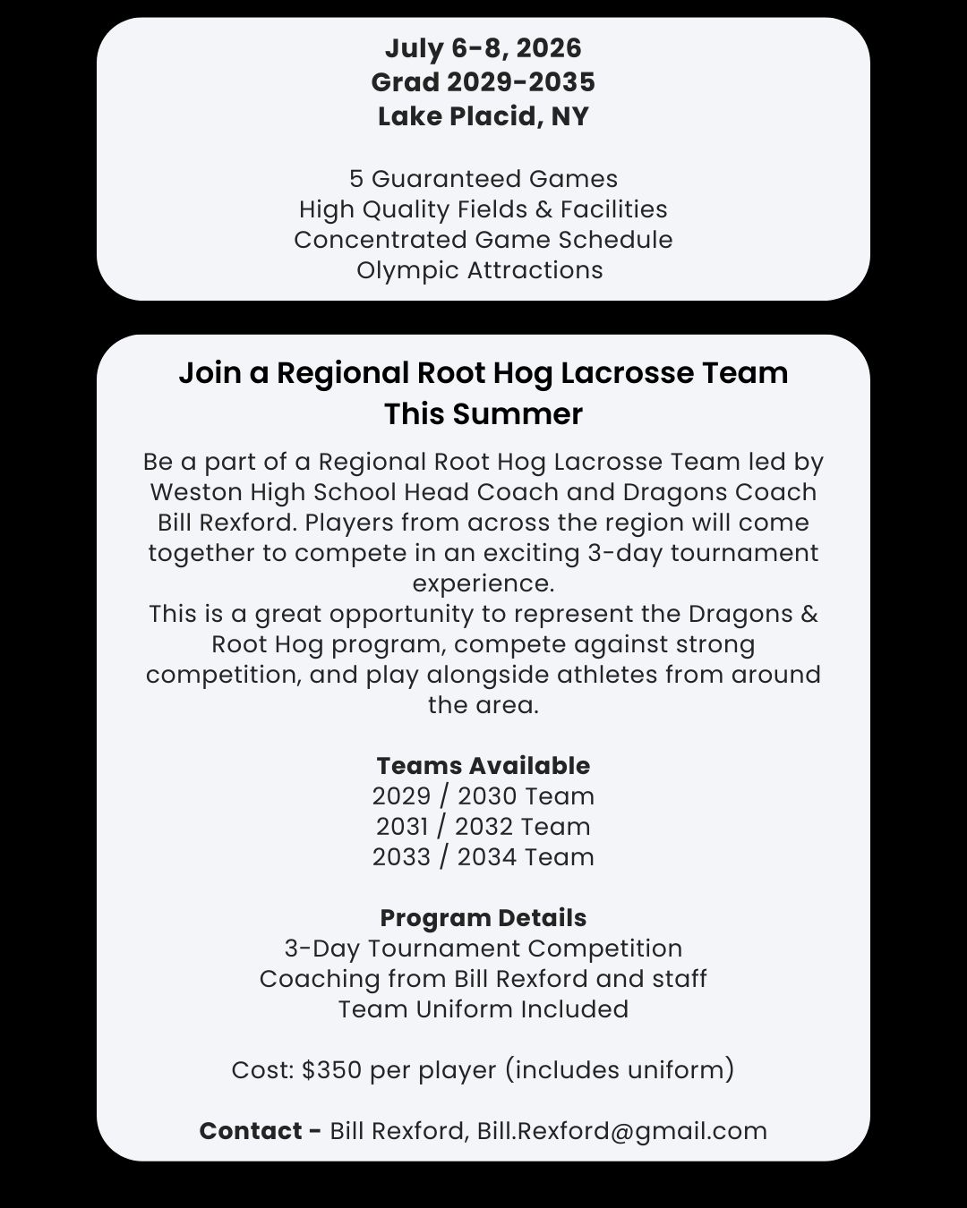 Lake Placid Add -on Tournament - Root Hog Regional Teams